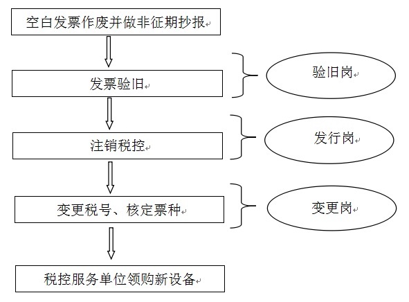 ?。?)稅控服務(wù)單位處領(lǐng)取升級流轉(zhuǎn)單,根據(jù)流轉(zhuǎn)單并到相應(yīng)窗口辦理發(fā)票繳銷驗舊。