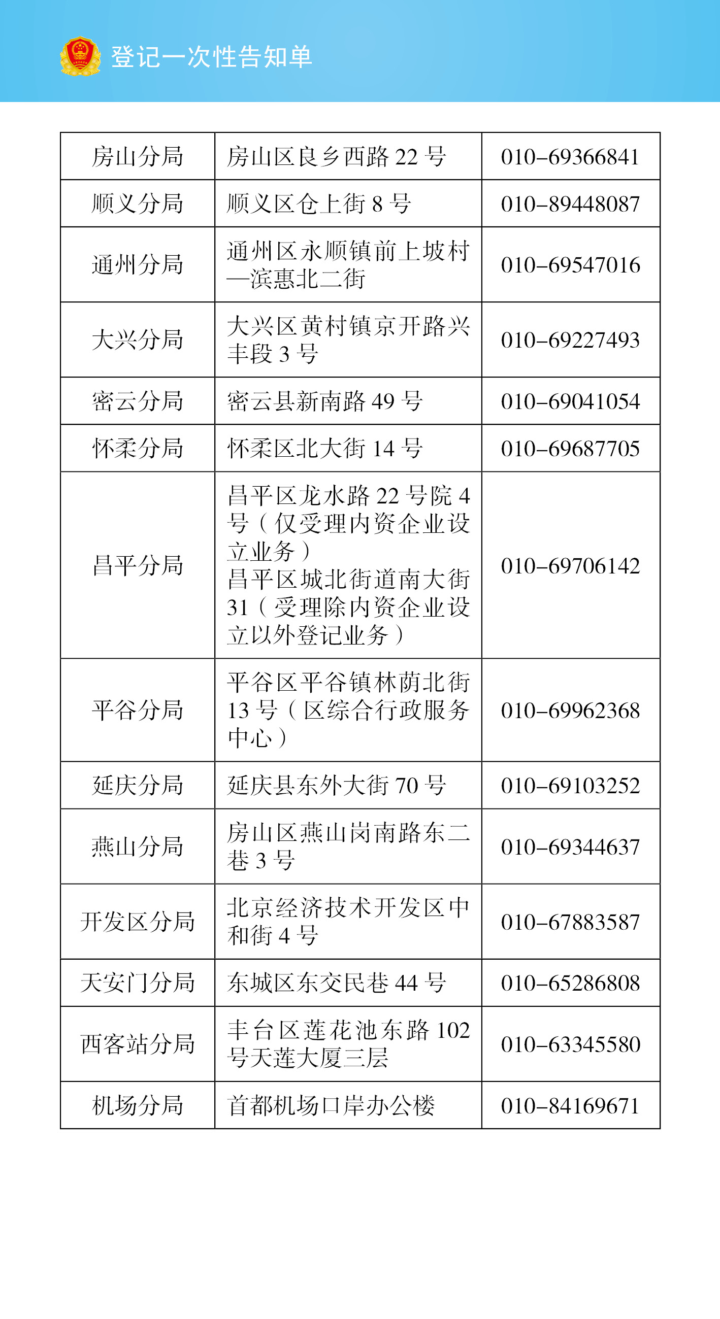有限責任公司設(shè)立登記一次性告知單