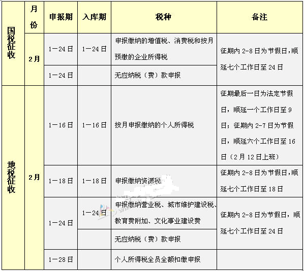 注:以上為北京市常用征期日歷,具體納稅申報(bào)時(shí)間以當(dāng)?shù)刂鞴芏悇?wù)機(jī)關(guān)規(guī)定為準(zhǔn),此表僅供參考。